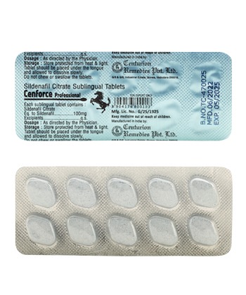 - Običajen odmerek Cenforce Professional je 50–100 mg.